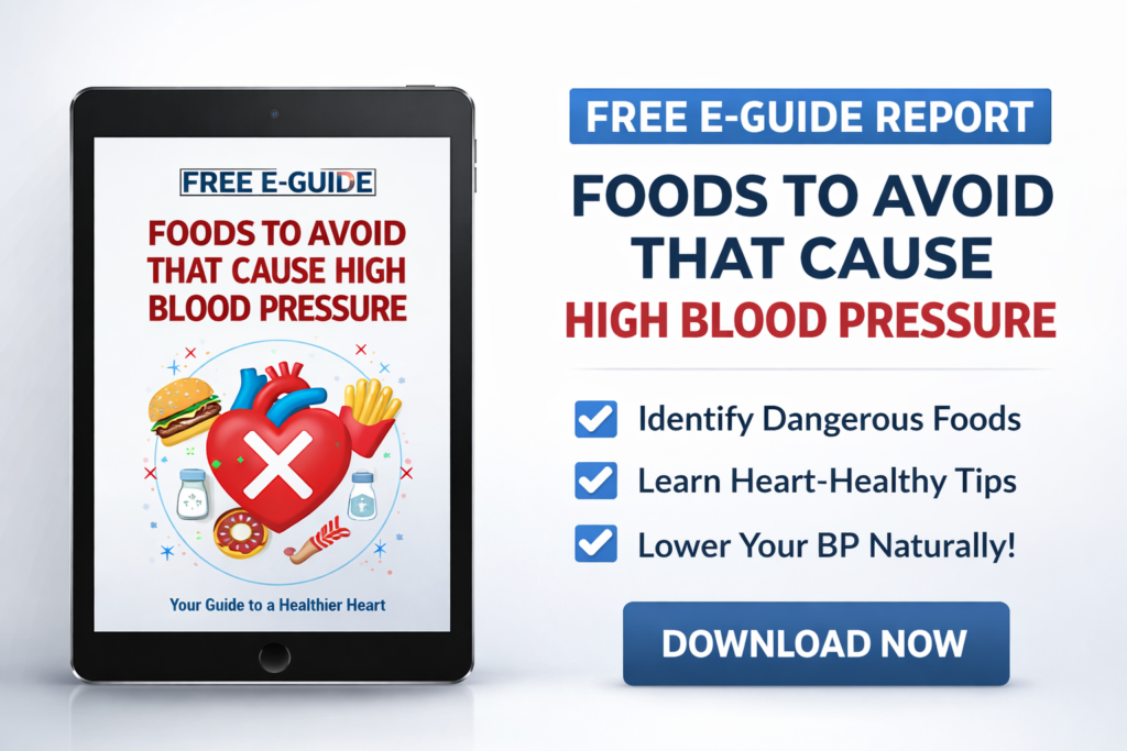 PLUS FREE eBook GUIDE ON FOOD YOU SHOULD NOT EAT THAT CAUSE HIGH BP!